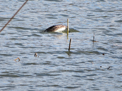 Ja tietenkin vakio eli kyhmyjoutsenpari pesimistä aloittamassa. Taustalle on osunut silkkiuikku,